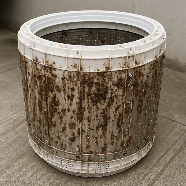 キレイに見える洗濯機でも、洗濯槽の裏側には黒カビや洗剤の溶け残り、細菌など様々な汚れが付着しています。それらの汚れはニオイ・黒い汚れの原因となります。
